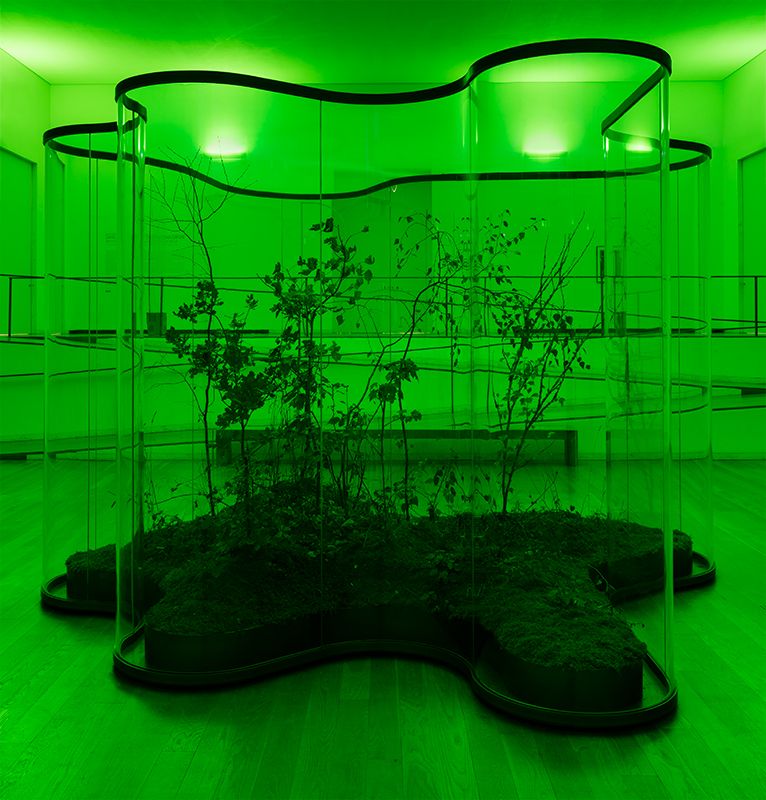 Large-scale installation fitted into a glass pavilion that contains a dynamic ecosystem combining local foliage and strange insects. The pavilion’s contours describe a shape reminiscent of the biomorphic silhouettes of the famous Alvar Aalto Savoy vase (designed for the Finnish Pavilion in the Paris World Fair of 1937).