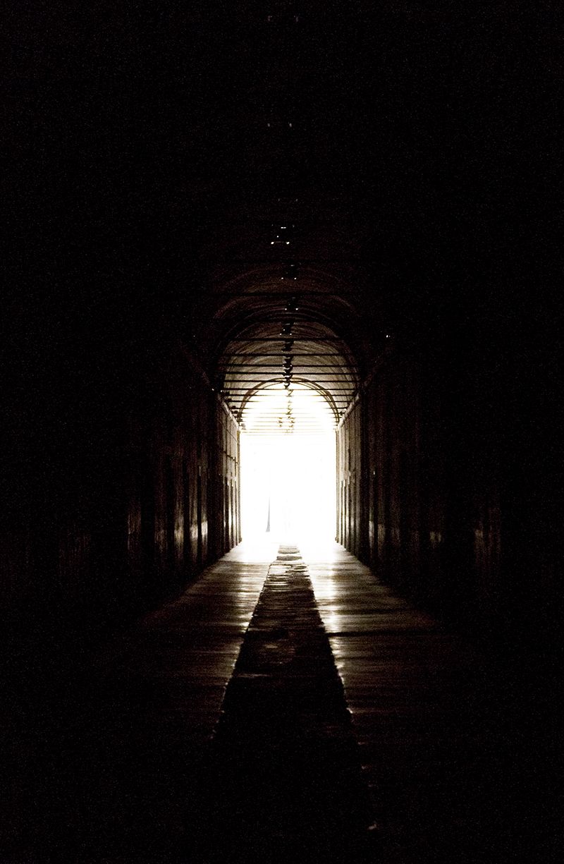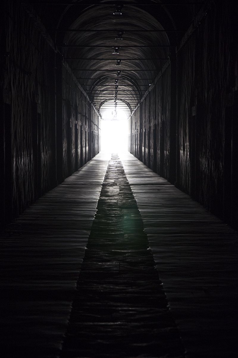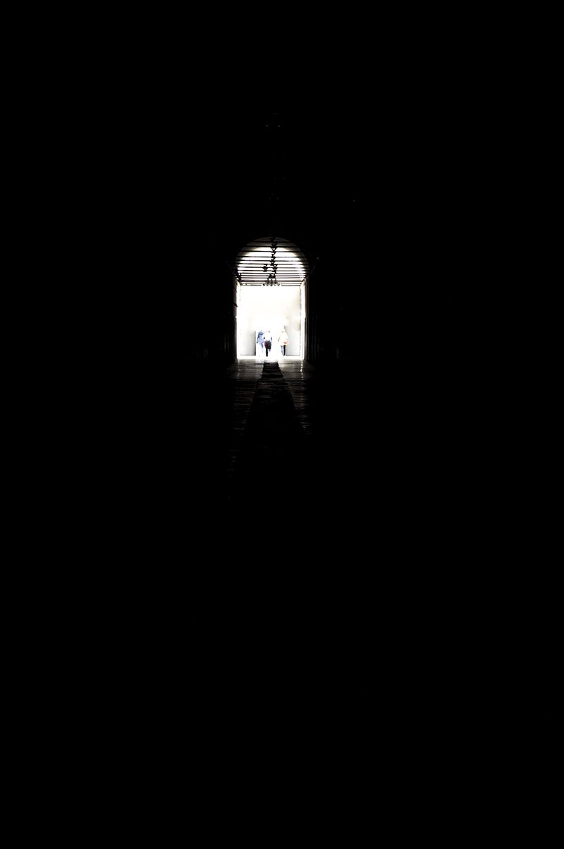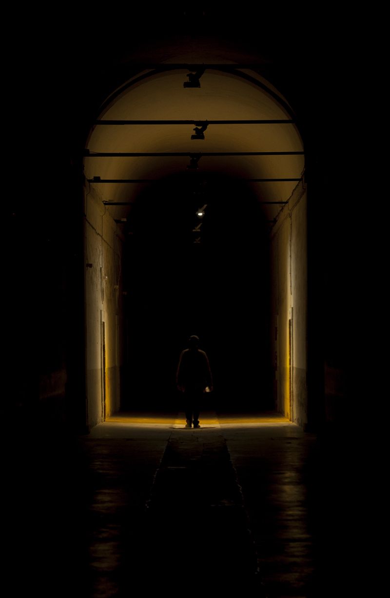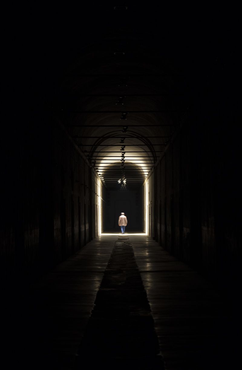 Light projectors activated by the presence of the visitor, who walk alone, or in small groups, who start on absolute darkness. As the visitos go through the corridor, the intensity of the light increases from a very low level, barely perceptible, to the light explosion and the end.